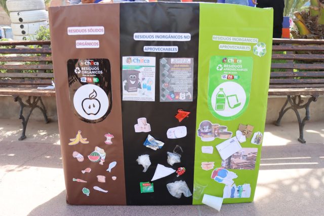 Finalmente, el tercer tacho corresponde a los residuos aprovechables, como botellas, cartones, latas y demás materiales reciclables que pueden tener una segunda vida útil.